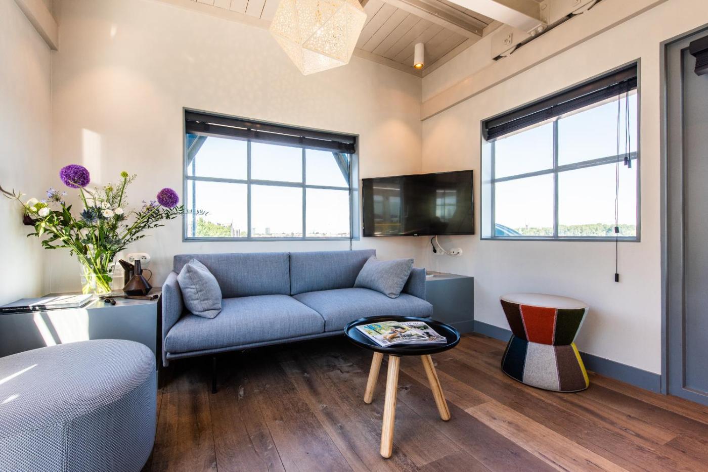 1 Bedroom Apartment. The Yays - Crane Apartment comes with a private bathroom, including bathtub and separate shower, fully equipped kitchen, living area and one bedroom. The bedroom has a panoramic view over the waterfront of Amsterdam.