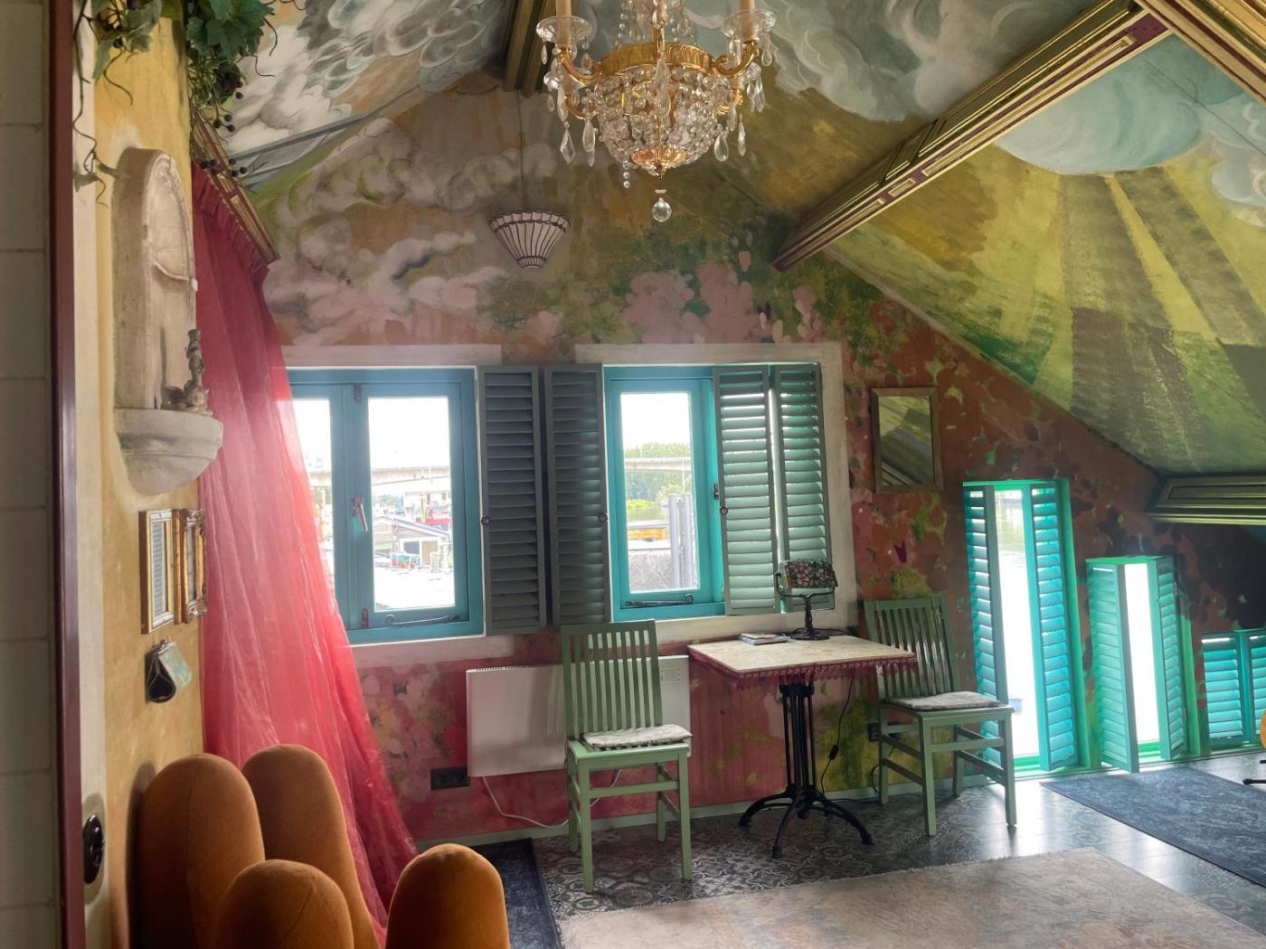 Drijfpaleis ison a houseboat offering uniquely themed accommodation, floating on the river Rhine and within just minutes of Arnhem’s city centre. It offers rooms with a private terrace at the riverside.