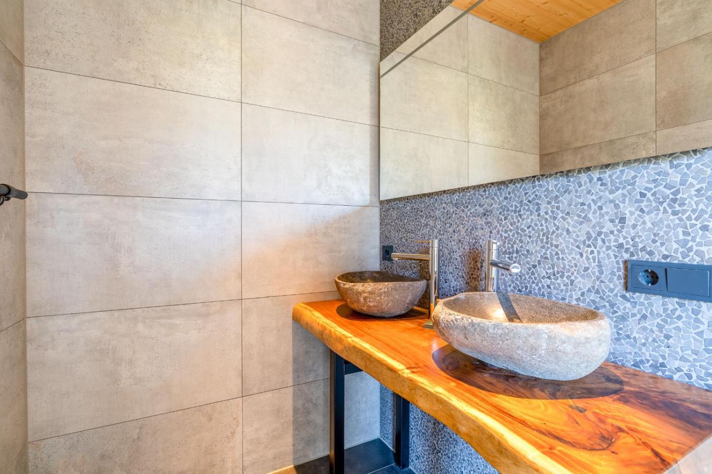 Three-Bedroom Villa. This villa boasts a hot tub and a fireplace. Featuring a private entrance, this villa is comprised of 1 living room, 3 separate bedrooms and 3 bathrooms with a walk-in shower and a bath. Guests will find a stovetop, a refrigerator, a dishwasher and kitchenware in the kitchen. The villa also has a barbecue. Boasting a terrace with garden views, this villa also offers a washing machine and a flat-screen TV with cable channels. The unit offers 6 beds.