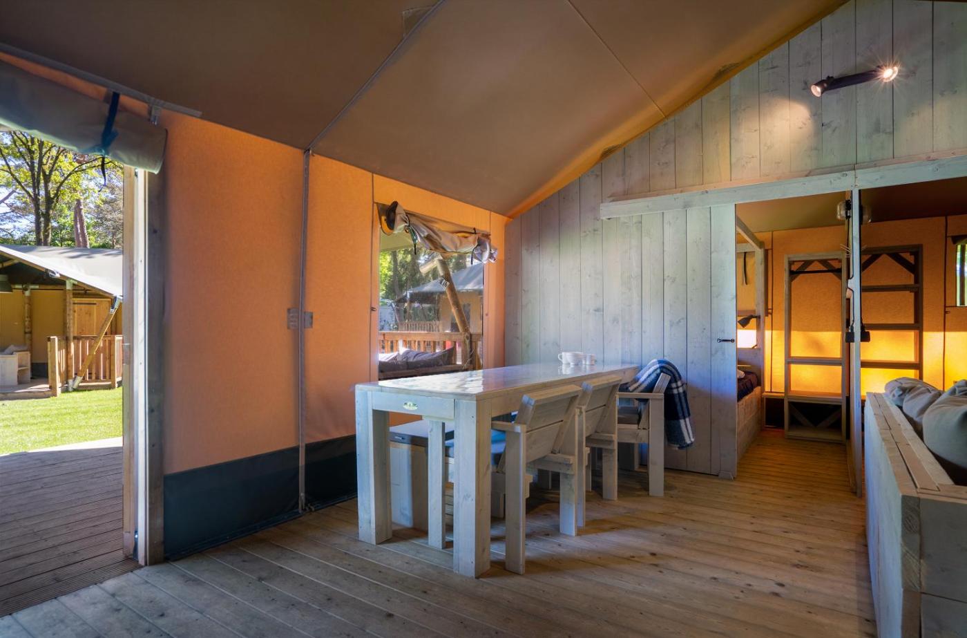 Tent. Meals can be prepared in the kitchen, which is fitted with a refrigerator, a dishwasher and kitchenware. This tent features a private bathroom, a private entrance, a tea and coffee maker as well as a terrace. The unit offers 4 beds. ;