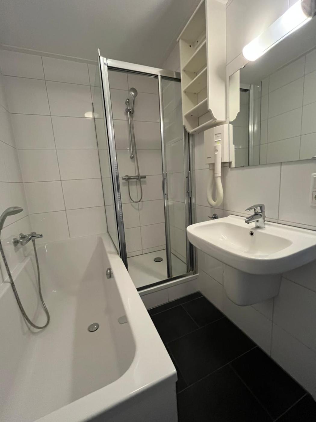 Studio. The studio features a coffee machine, a dining area, as well as a private bathroom boasting a bath and a shower. Guests can make meals in the kitchen that features a stovetop, a refrigerator, kitchenware and a microwave. The studio has parquet floors, a seating area with a flat-screen TV with cable channels, a washing machine, a private entrance, as well as soundproof walls. The unit has 1 bed. ;