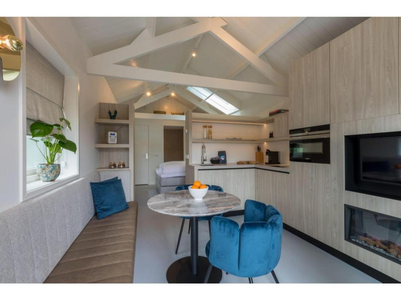 The 1-bedroom holiday home has a living room with a TV, a fully equipped kitchen with a dishwasher and oven, and 1 bathroom with shower. There is also a seating area and a fireplace.
