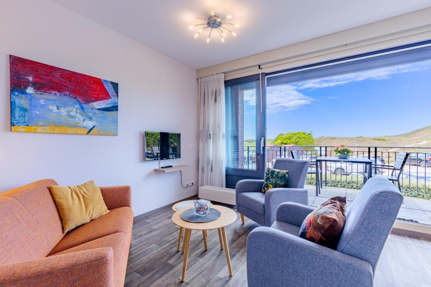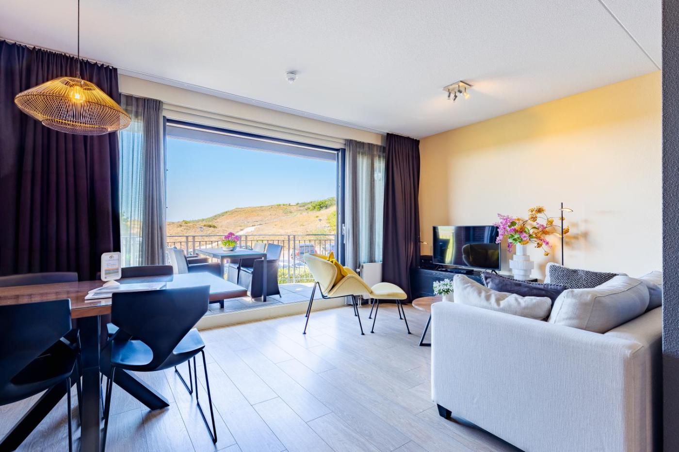 Two-Bedroom Apartment. This apartment features a dining area, kitchenware and seating area. The corner apartment Ruimzicht 25 (57m2) with a cozy interior is located on the first floor with a balcony and has a sunny south-eastern orientation. You have your own parking space (-1) in the underground parking garage. ;