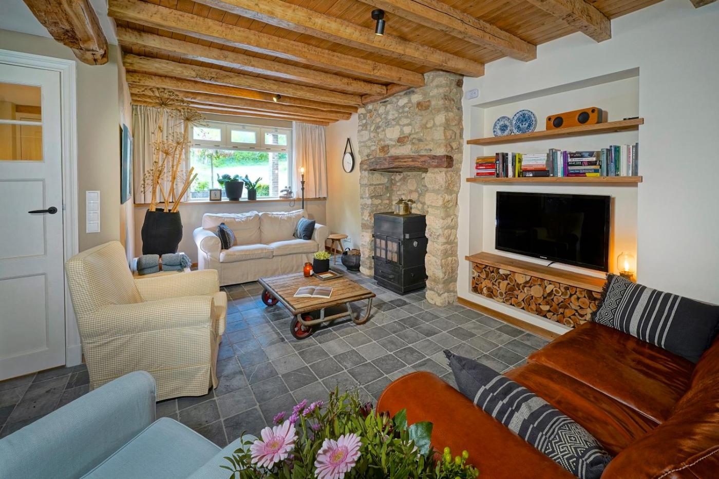 Two-Bedroom House. The fireplace is the standout feature of this holiday home. Guests will find a stovetop, a refrigerator, a dishwasher and kitchenware in the well-fitted kitchen. The holiday home also comes with a barbecue. The spacious holiday home features a private entrance, a tea and coffee maker, a seating area, a flat-screen TV with streaming services, as well as garden views. The unit has 3 beds.
