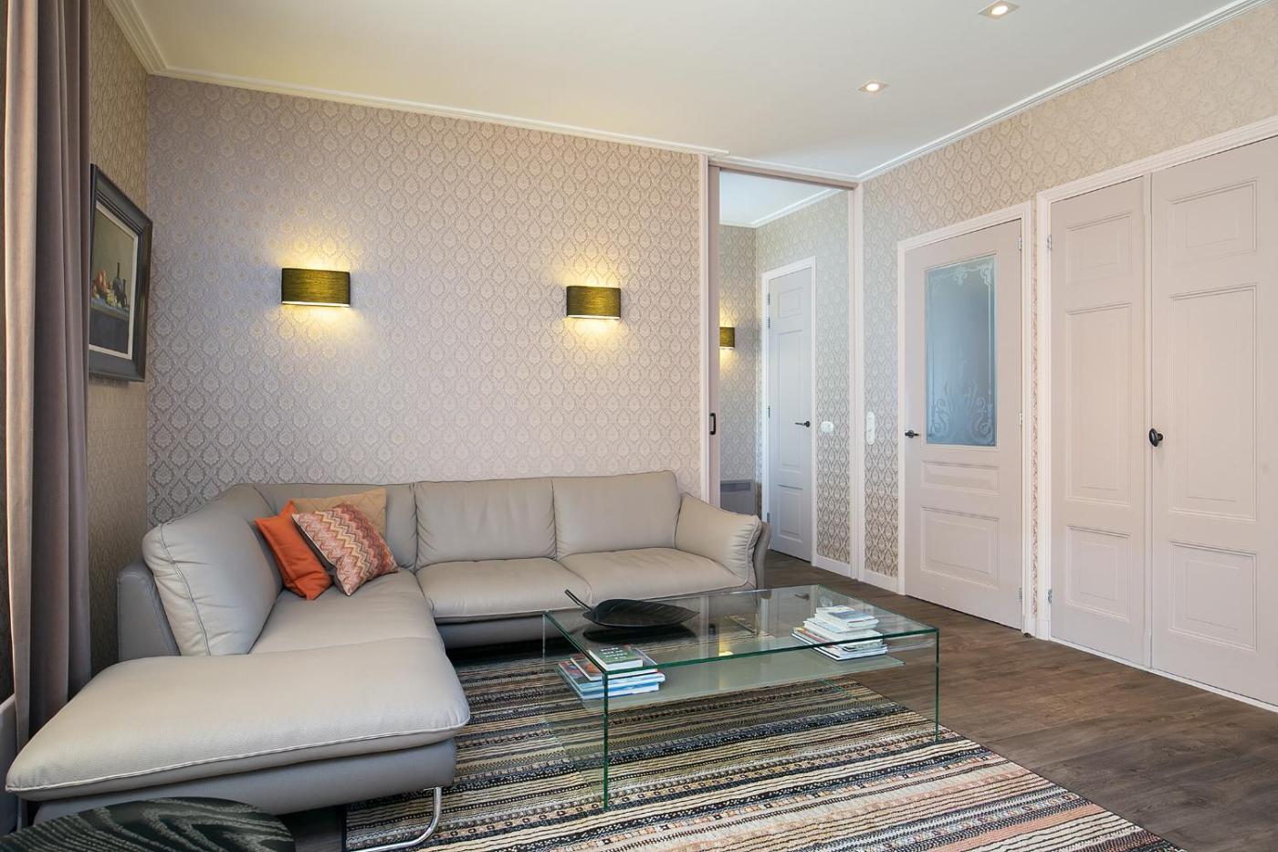 Two-Bedroom Apartment. Featuring a private entrance, this spacious apartment also consists of 2 bedrooms, a seating area and 2 bathrooms with a bath or a shower and a hairdryer. In the well-equipped kitchen, guests will find a stovetop, a refrigerator, a dishwasher and kitchenware. The apartment provides a washing machine, a coffee machine, tumble dryer, a sofa and a flat-screen TV. The unit offers 3 beds.