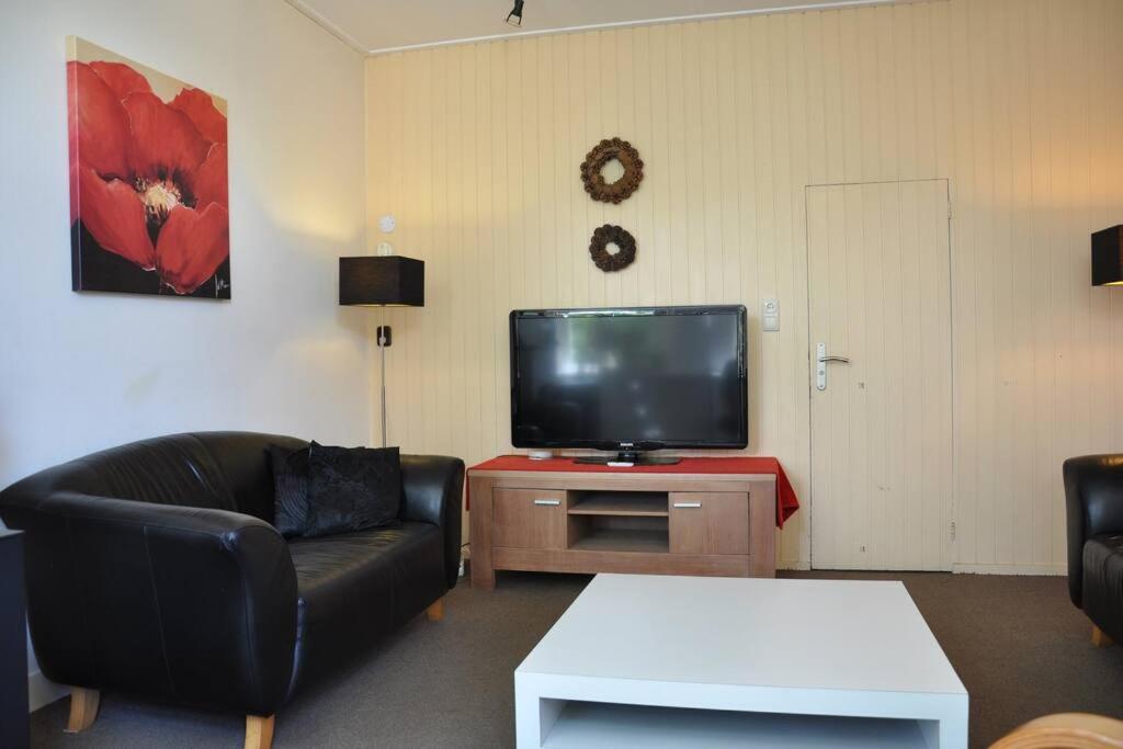 The holiday home with a terrace and garden views features 2 bedrooms, a living room, a flat-screen TV, an equipped kitchen with a dishwasher and an oven, and 1 bathroom with a walk-in shower. Towels and bed linen are provided in the holiday home. The property has an outdoor dining area.