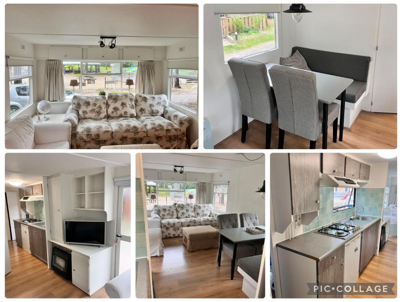 Mobile Home. Boasting a private entrance, this mobile home also comes with 1 living room, 3 separate bedrooms and 1 bathroom with a walk-in shower. The mobile home features a washing machine, a tea and coffee maker, a seating area, a flat-screen TV with cable channels, as well as pool views. The unit has 3 beds.