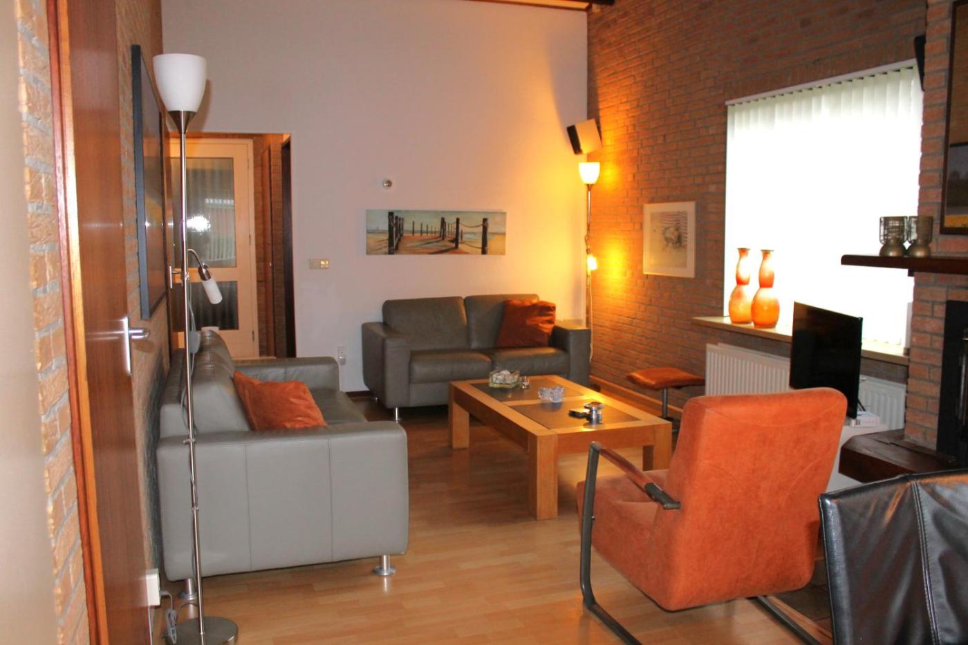 Three-Bedroom House. The fireplace is a top feature of this holiday home. Boasting a private entrance, this holiday home also comes with 2 bedrooms, a seating area and 1 bathroom with a shower and a hairdryer. Guests will find a stovetop, a refrigerator, a dishwasher and an oven in the well-fitted kitchen. The holiday home also includes a barbecue. Featuring a terrace with garden views, this holiday home also features a washing machine and a flat-screen TV. The unit has 4 beds.