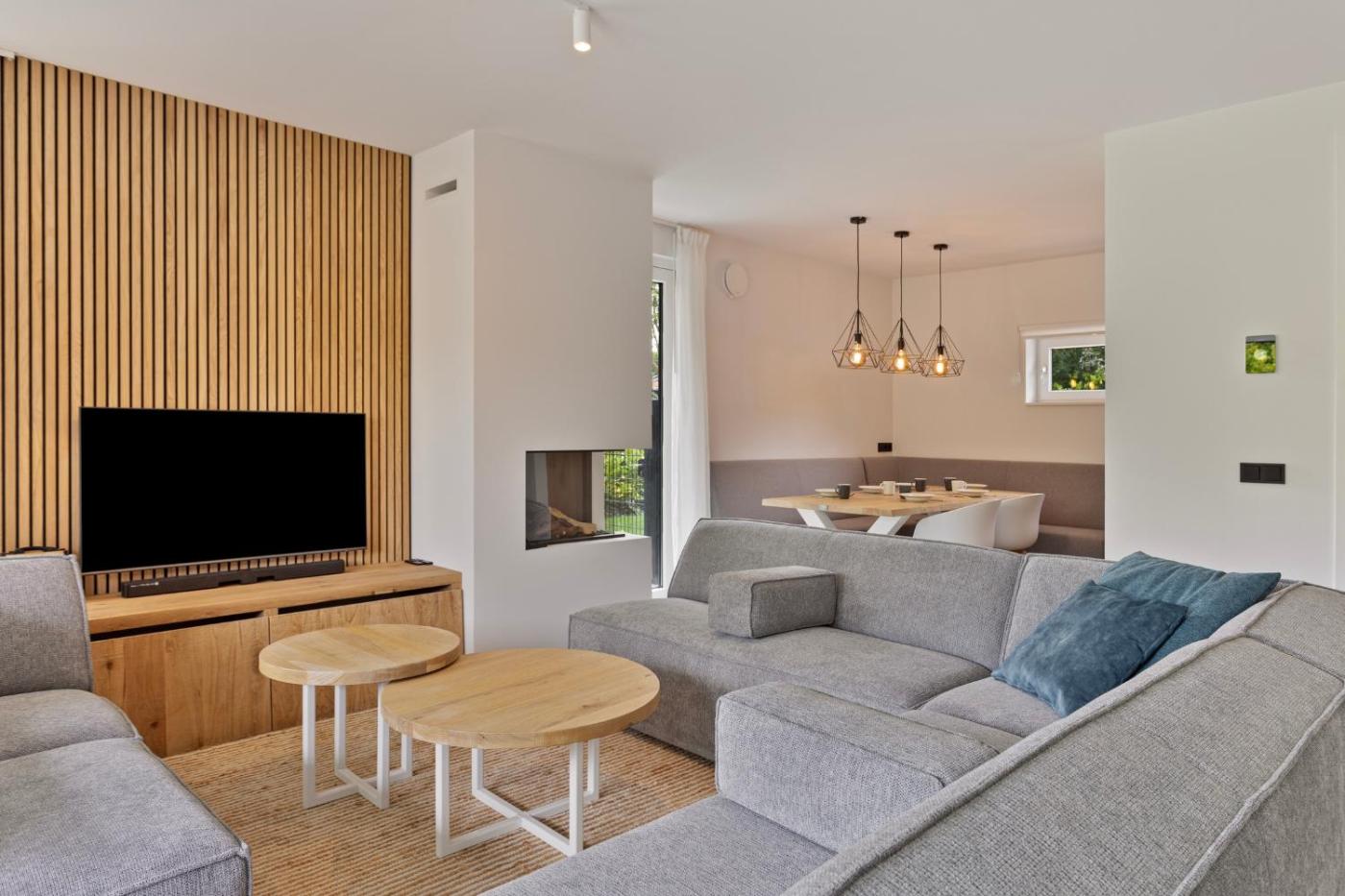 Three-Bedroom House. Guests will have a special experience as this holiday home features a hot tub and a sauna. Featuring a private entrance, this holiday home also is comprised of 3 bedrooms, a seating area and 2 bathrooms with a walk-in shower and a bath. In the kitchen, guests will find a stovetop, a refrigerator, a dishwasher and kitchenware. Boasting a terrace with garden views, this holiday home also offers a washing machine and a TV. The unit offers 4 beds.