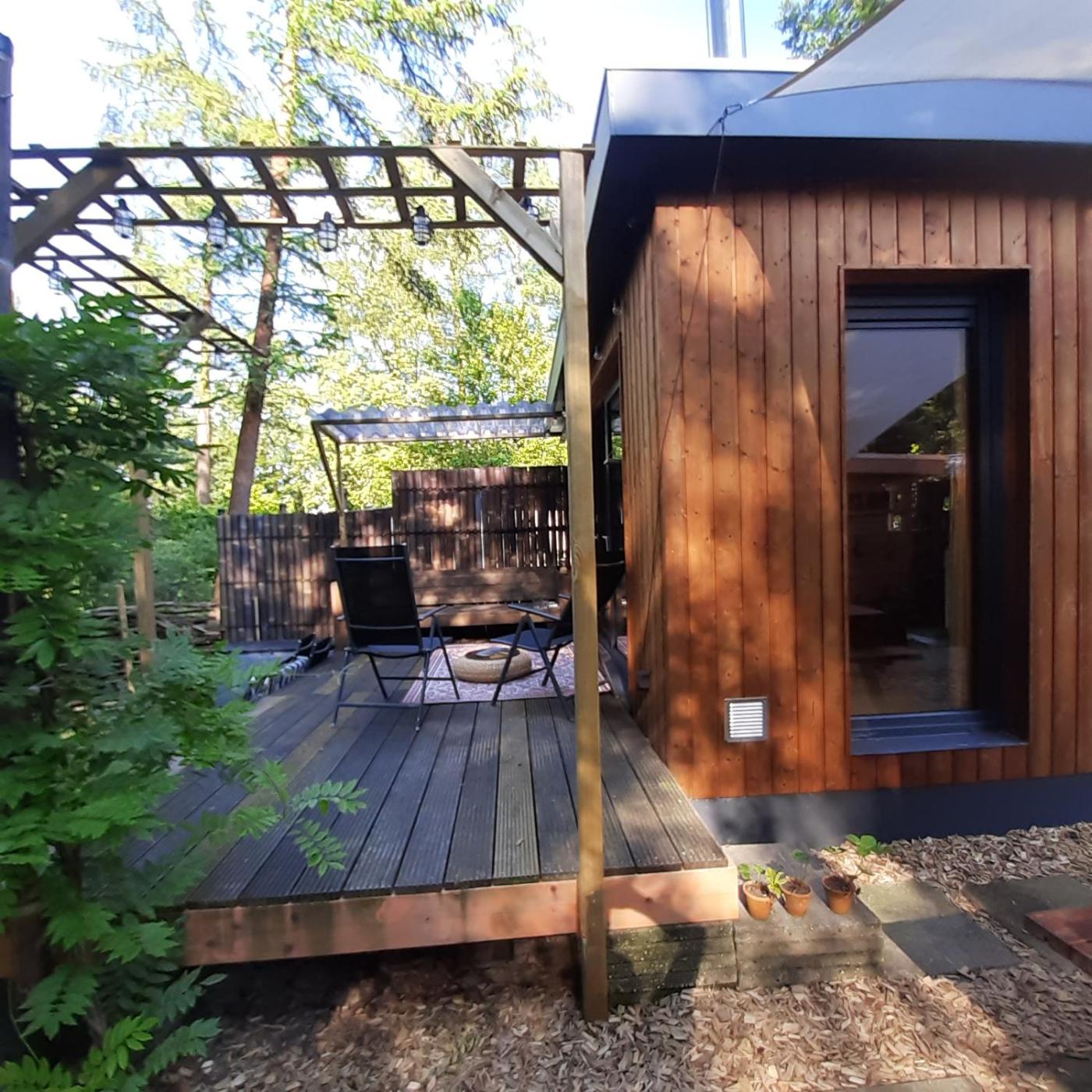 Tiny House with Two-Bedroom and Sauna. The sauna and fireplace are the special features of this holiday home. Boasting a private entrance, this holiday home comes with 1 living room, 2 separate bedrooms and 1 bathroom with a shower and a hairdryer. In the well-equipped kitchen, guests will find a stovetop, a refrigerator, kitchenware and an oven. The unit has a washing machine, garden views, a terrace and winechampagne is available for guests. The unit has 4 beds.