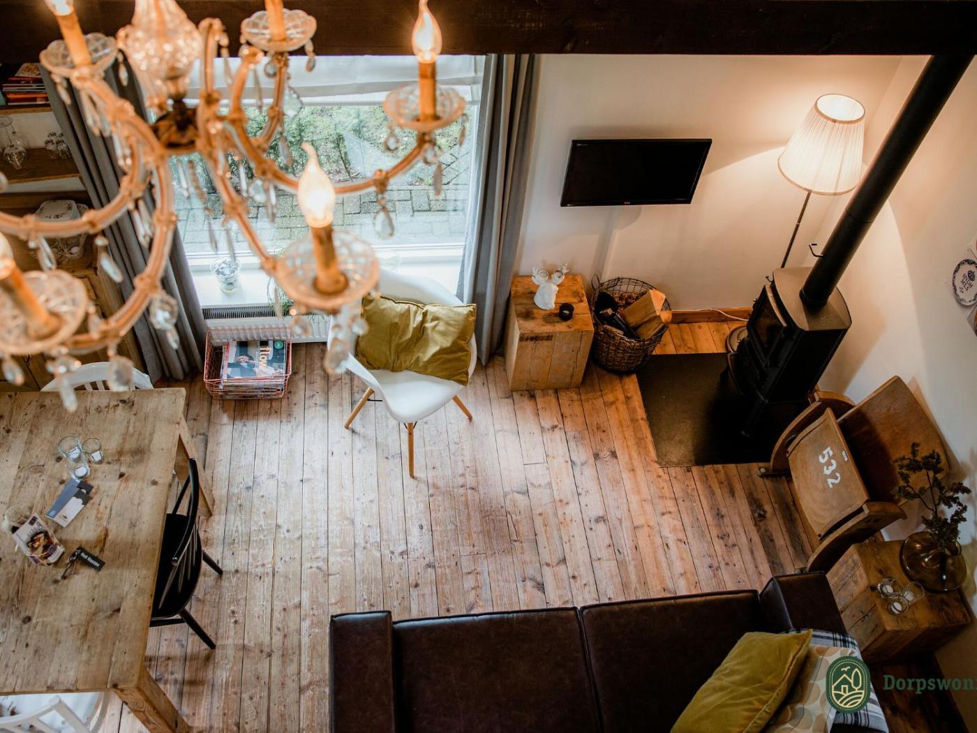 The holiday home with a terrace and garden views has 1 bedroom, a living room, a TV, an equipped kitchen with a dishwasher and an oven, and 1 bathroom with a shower. There is also a seating area and a fireplace.