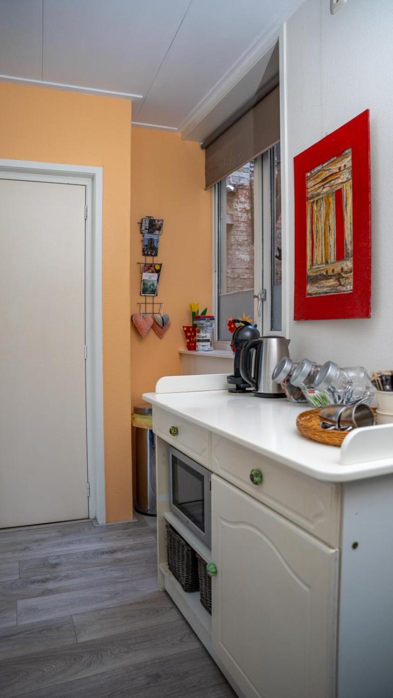 Large Double Room. Appartement in Canal House in city centre. This double room has a teacoffee maker, fridge, and flat-screen TV.