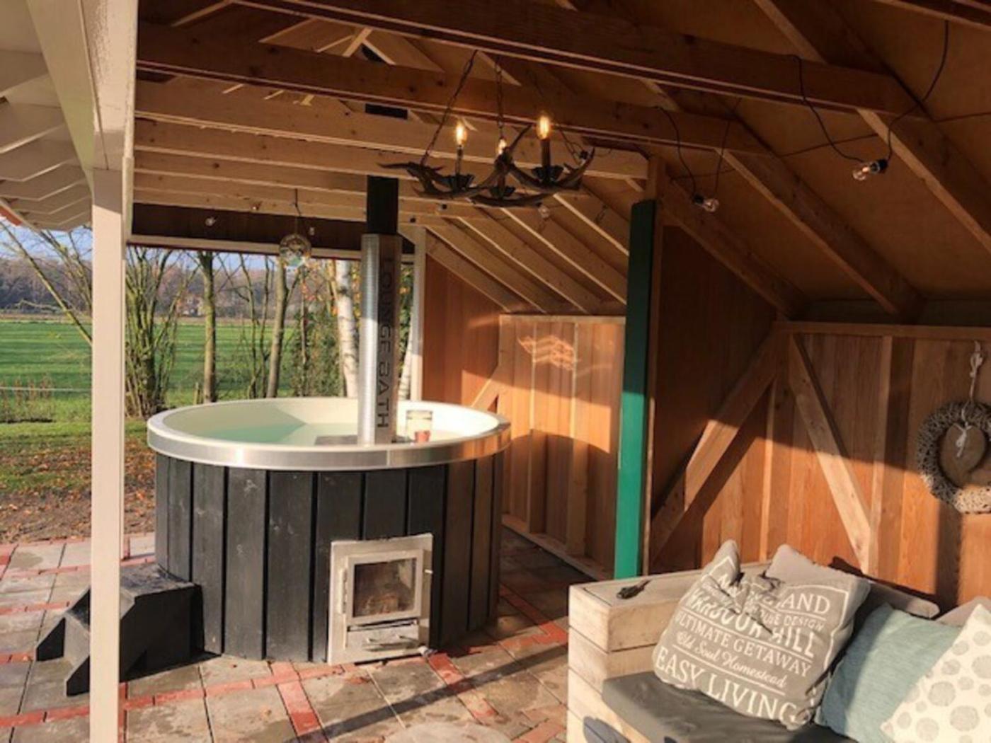 De Essenburgh 7-persoons, overdekte hottub en lounge, barrel sauna, sunshower, wifi, omheinde tuin, huisdier vriendelijk - Lievelde