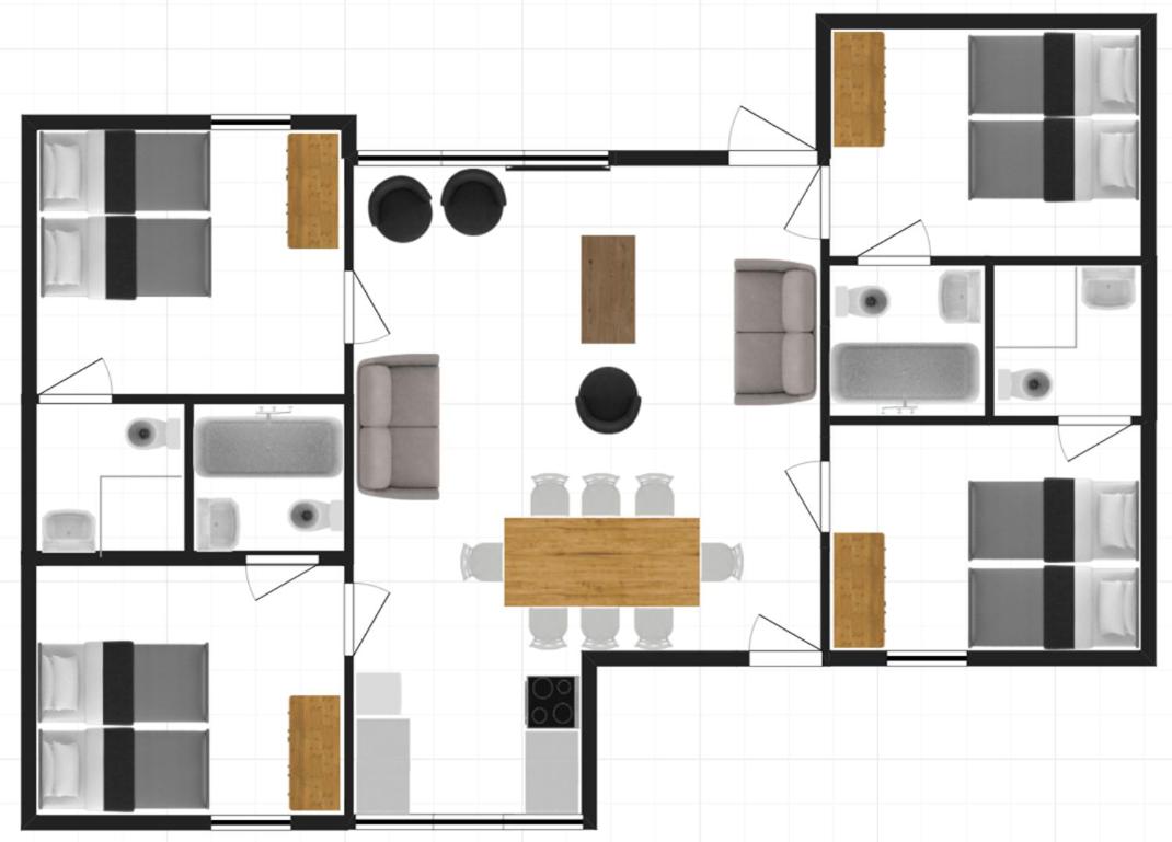 Four-Bedroom House. The fireplace is a top feature of this holiday home. Boasting a private entrance, this holiday home comes with 1 living room, 4 separate bedrooms and 4 bathrooms with a bath and a shower. The fully equipped kitchen has a stovetop, a refrigerator, a dishwasher and kitchenware. Featuring a terrace with garden views, this holiday home also features a coffee machine and a flat-screen TV. The unit has 8 beds.