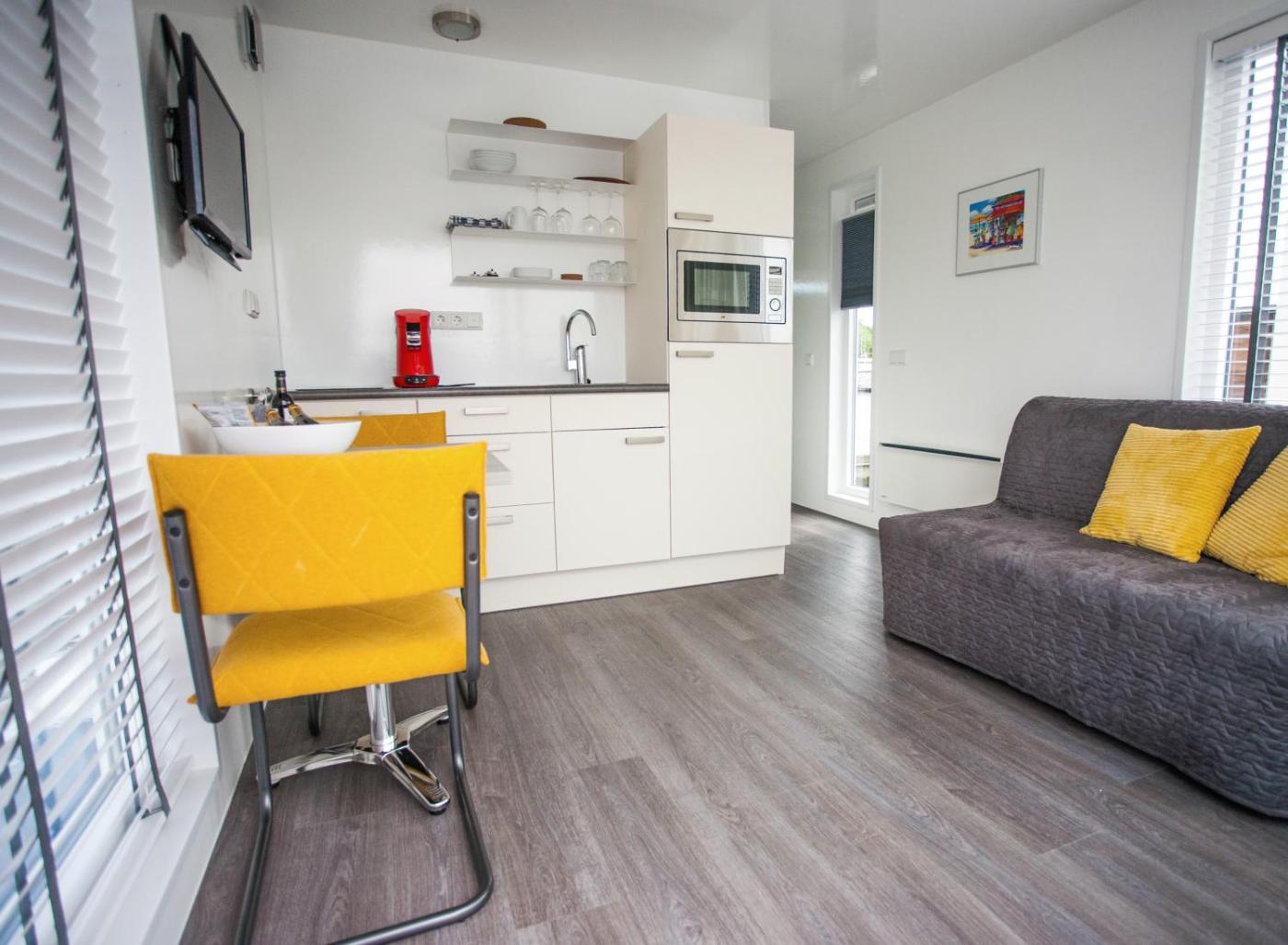 The holiday home with a terrace and lake views has 1 bedroom, a living room, a flat-screen TV, an equipped kitchen with an oven and a microwave, and 1 bathroom with a shower. Towels and bed linen are offered in the holiday home. This holiday home is allergy-free and non-smoking.