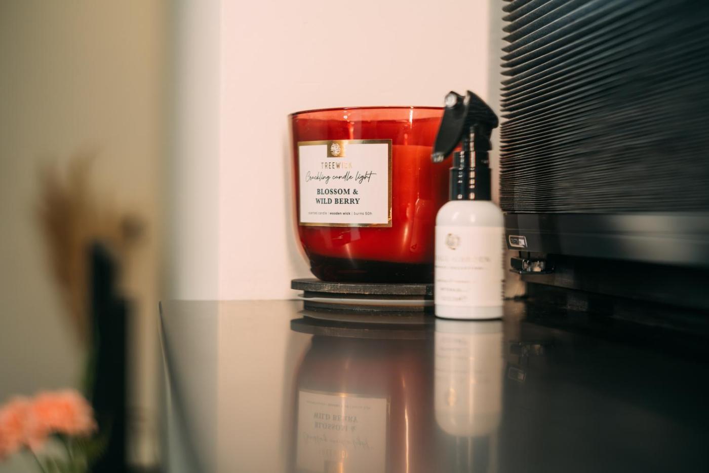 One-Bedroom Apartment. Featuring a private entrance, this spacious apartment also is comprised of 1 living room, 1 separate bedroom and 1 bathroom with a shower. The well-fitted kitchen has a stovetop, a refrigerator, a dishwasher and kitchenware. This apartment features a tea and coffee maker, a seating area, flat-screen TV with streaming services, as well as winechampagne for guests. The unit offers 2 beds.