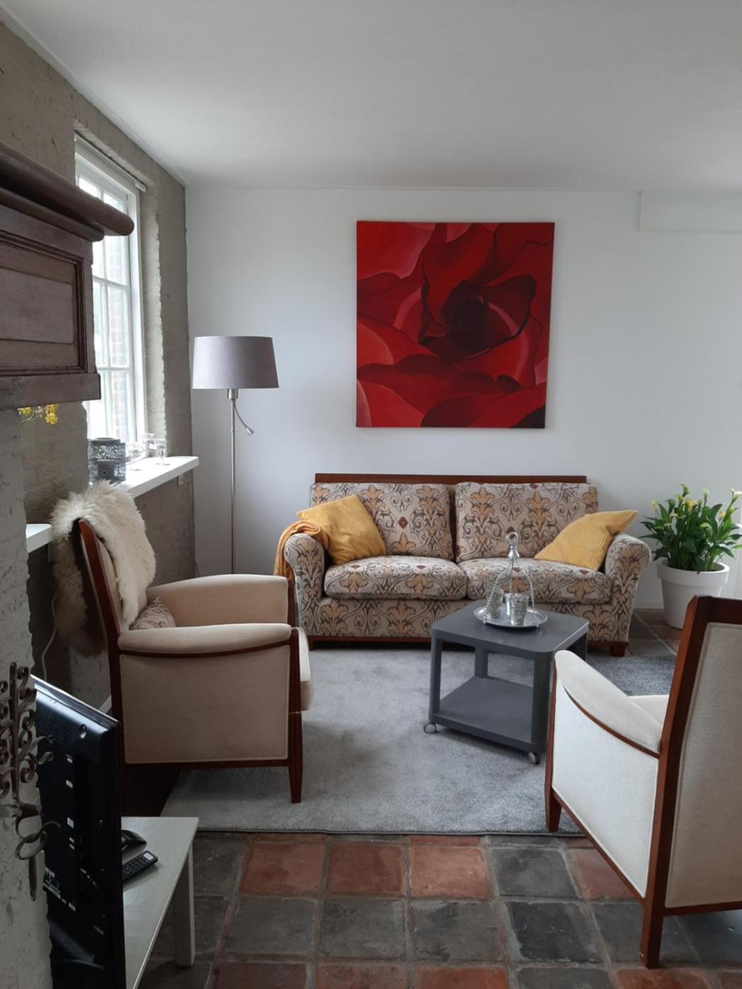 Two-Bedroom Apartment. The fireplace is the standout feature of this apartment. Boasting a private entrance, this spacious apartment also features 2 bedrooms, a seating area and 1 bathroom with a walk-in shower and a hairdryer. Guests will find a stovetop, a refrigerator, kitchenware and an oven in the well-fitted kitchen. The apartment also comes with a barbecue. Featuring a terrace with garden views, this apartment also features soundproof walls and a flat-screen TV. The unit has 3 beds.