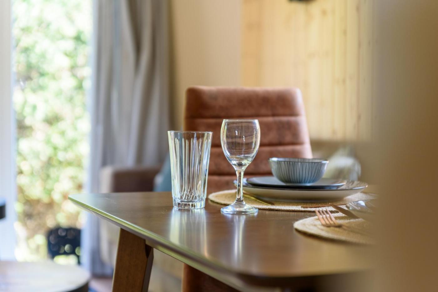 Two-Bedroom Chalet. This chalet features 2 bedrooms, kitchen and 1 bathroom with a shower. In the well-fitted kitchen, guests will find a stovetop, a refrigerator, a microwave and a tea and coffee maker. Boasting outdoor furniture, this chalet also features a high chair for children, heating and a TV. The unit has 3 beds.