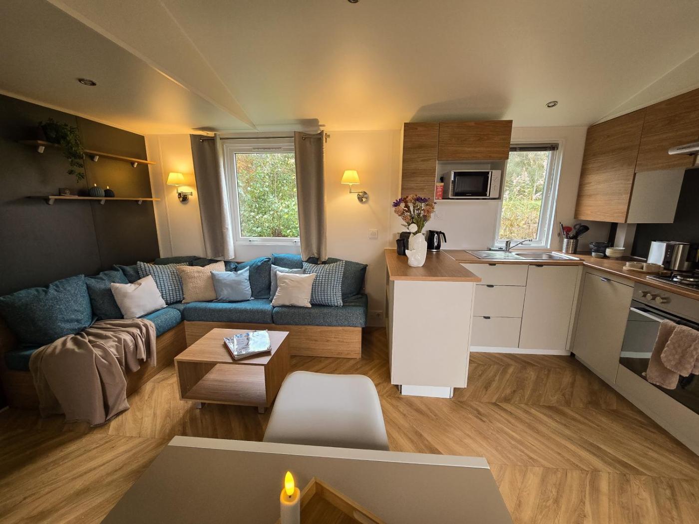 Two-Bedroom Chalet. Featuring a private entrance, this chalet is comprised of 1 living room, 2 separate bedrooms and 2 bathrooms with a shower and a hairdryer. Guests will find a stovetop, a refrigerator, a dishwasher and an oven in the fully equipped kitchen. The chalet also has a barbecue. Boasting a terrace with garden views, this chalet also offers a tea and coffee maker and a flat-screen TV with cable channels. The unit offers 3 beds.