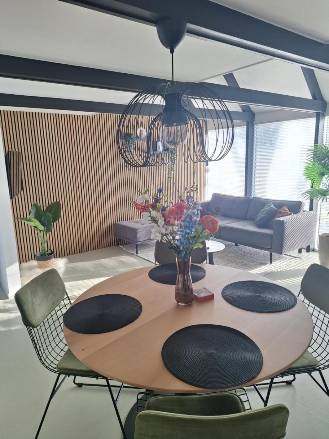 The holiday home with a terrace and garden views features 2 bedrooms, a living room, a flat-screen TV, an equipped kitchen with a dishwasher and an oven, and 1 bathroom with a walk-in shower. Towels and bed linen are featured in the holiday home. The property has an outdoor dining area.