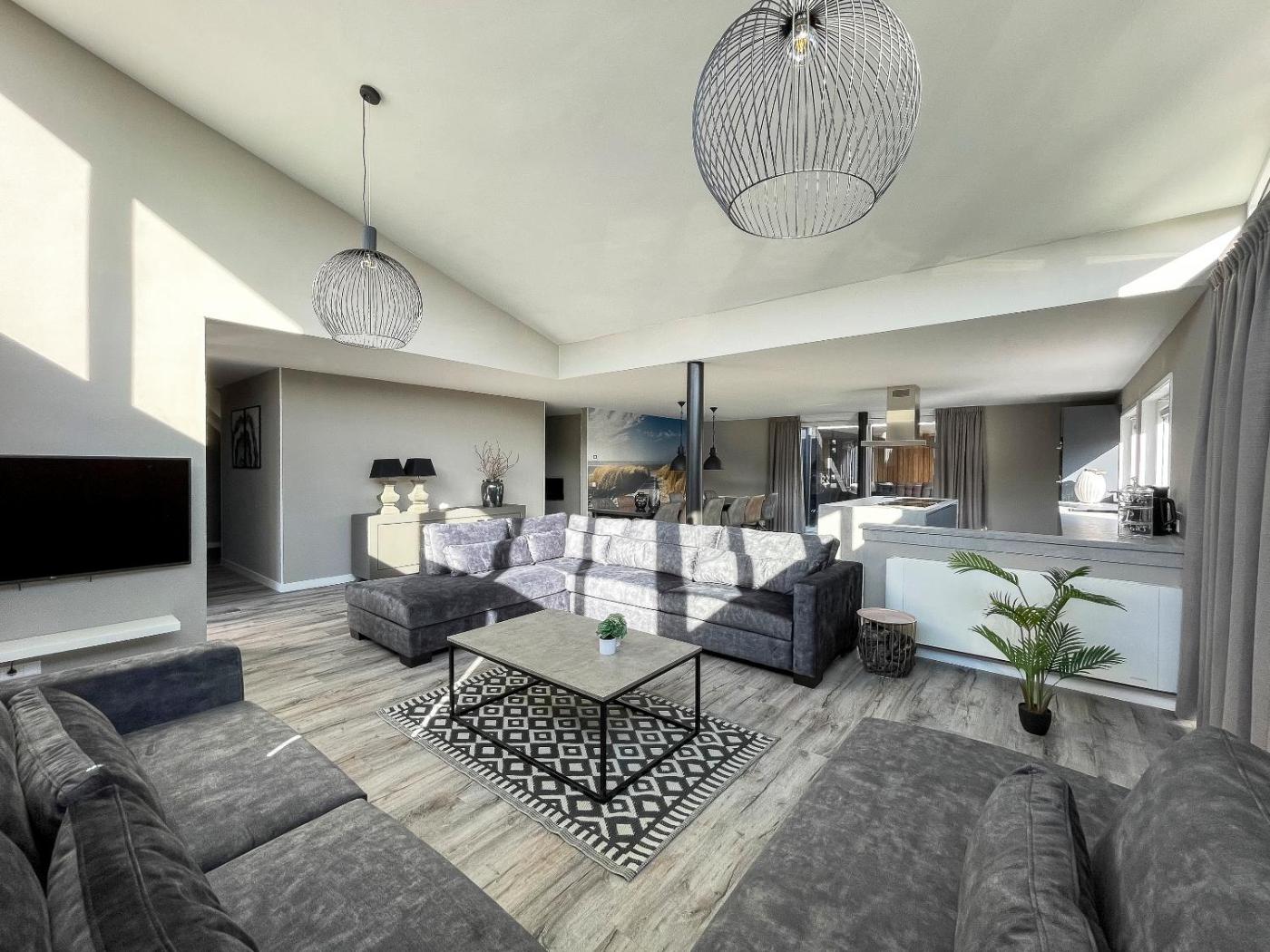 Six-Bedroom House. Featuring 6 bedrooms, this spacious holiday home offers 2 bathrooms with a bath, a seating area and terraceyou can relax. The fully equipped kitchen features a stovetop, a refrigerator, a dishwasher and an oven. The air-conditioned holiday home provides a flat-screen TV, a coffee machine, a dining area, a wardrobe as well as garden views. The unit has 12 beds.
