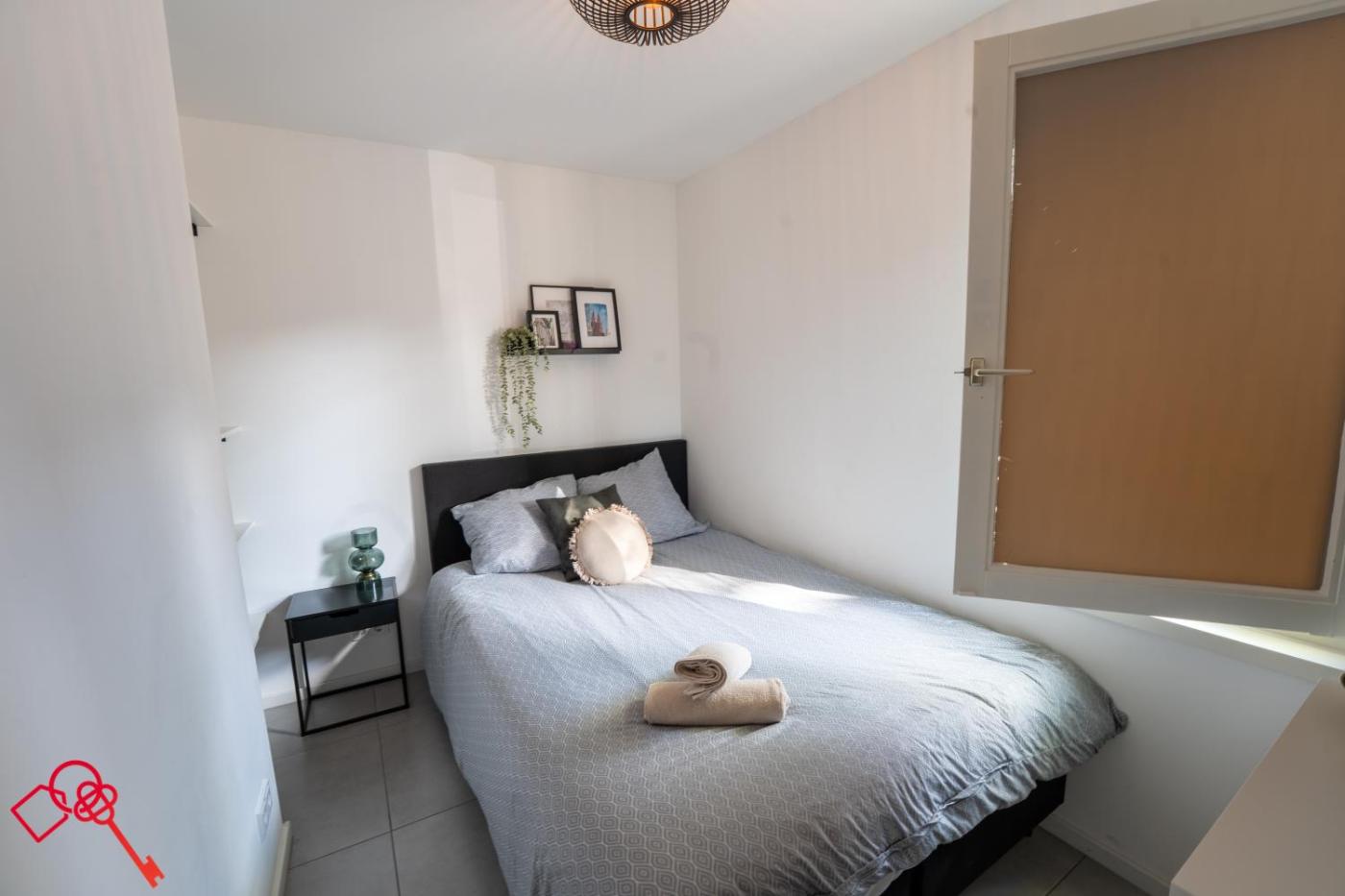 Two-Bedroom Apartment. Meals can be prepared in the well-fitted kitchen, which comes with a stovetop, a refrigerator, a dishwasher and kitchenware. The air-conditioned apartment offers a flat-screen TV with streaming services, a washing machine, soundproof walls, a tea and coffee maker as well as a quiet street view. The unit offers 3 beds.