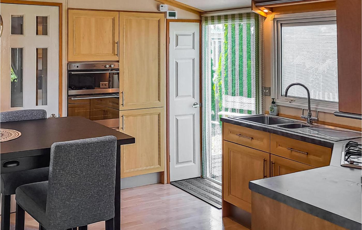 Mobile Home. Boasting a private entrance, this mobile home comes with 1 living room, 2 separate bedrooms and 1 bathroom with a shower. In the well-fitted kitchen, guests will find a stovetop, a refrigerator, kitchenware and an oven. Featuring outdoor furniture, this mobile home also features a tea and coffee maker, a dining area and a TV. The unit has 2 beds.