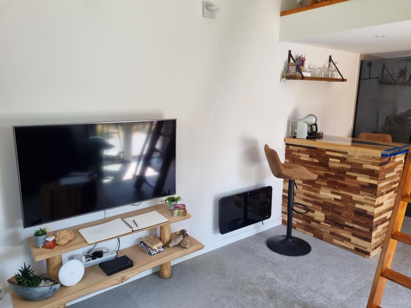 Composed of 2 bedrooms and 1 bathroom with a walk-in shower and a bath, this chalet is equipped with a cable flat-screen TV. A private entrance leads gueststhe chalet,they can enjoy some wine or champagne and fruits. This chalet is non-smoking and soundproof.
