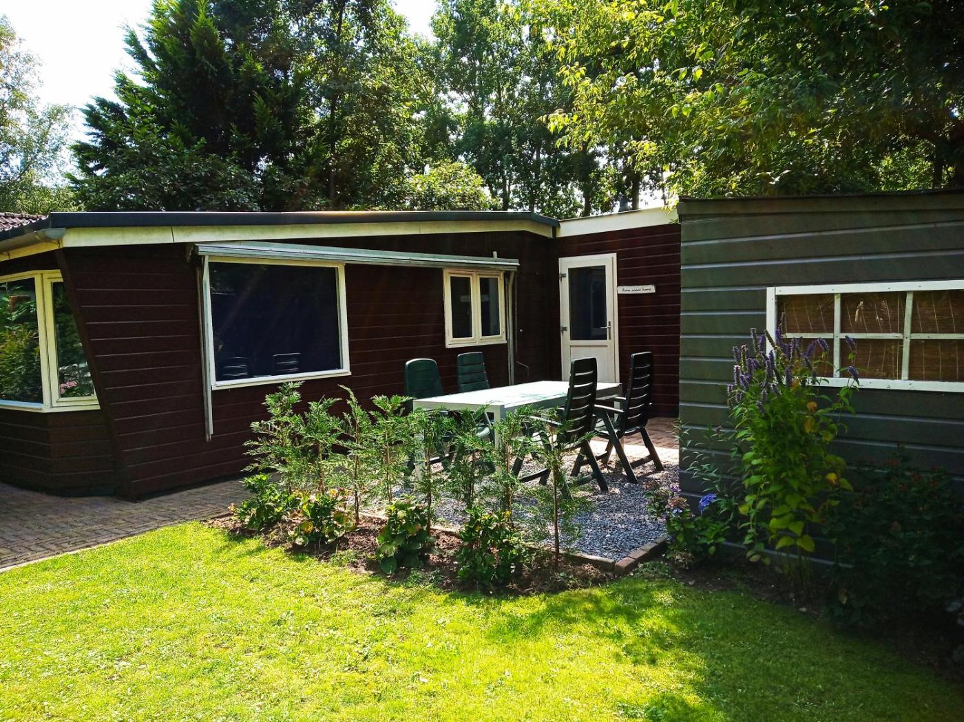 The chalet is fitted with 2 bedrooms, 1 bathroom, bed linen, towels, a flat-screen TV with cable channels, a dining area, a fully equipped kitchen, and a terrace with garden views. The property has an outdoor dining area.