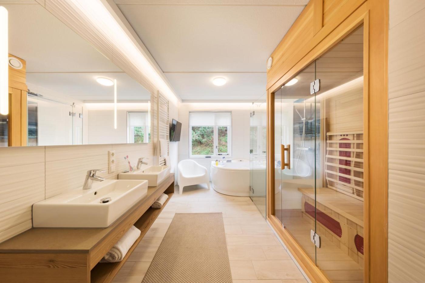 VIP Cottage renewed 4-persons. This villa features a spa bath, sauna and fireplace. This villa features 1 living room, 2 separate bedrooms and 1 bathroom with a bath or a shower and free toiletries. Guests can make meals in the kitchen that has a stovetop, a refrigerator, a dishwasher and kitchenware. Boasting a terrace, this villa also features a private entrance, a tea and coffee maker and a flat-screen TV. The unit has 4 beds. ;