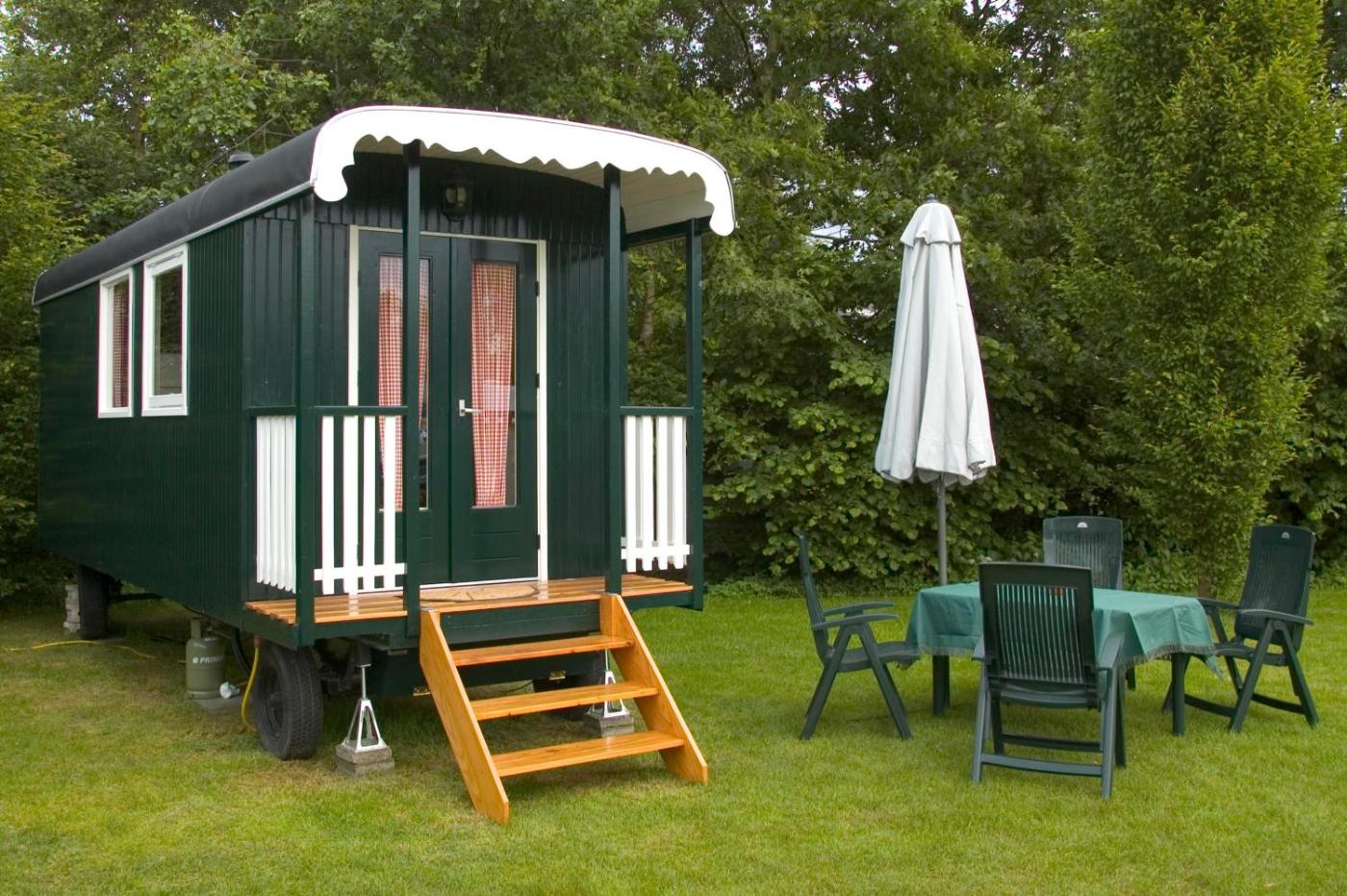 Gypsy Wagon. This quadruple room offers a shared bathroom, and heating. In the kitchen, guests will find a stovetop, a refrigerator, kitchenware and a tea and coffee maker. Among the room amenities are a private entrance, a seating area, a dining area as well as an outdoor dining area and garden views. The unit has 3 beds. ;